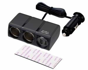 | *Socket extension unit with cord (1 m / 3.3 ft. length) that can be installed in any location you prefer using double-sided tape. *An expansion socket with two 12V sockets and USB-C and USB-A ports. *The USB ports’ automatic detection feature automatically detects the connected devices to charge each device at a suitable charging current. *Independent control for each port enables simultaneous charging of different devices at their respective optimal charging conditions. *The power monitor uses two blue LED lights, giving your car interior a more elegant feel at night. * This device powers two 12 V sockets and USB 2.0 ports (combined total of 5 V / 2.4 A). * Uses reversible USB ports so cables can be inserted without the hassle of checking the plug’s orientation. * The plug's 90-degree swinging design enables adjustment of plug angle. * Compatible with vehicles equipped with a power socket of an internal diameter from 21.0 mm to 22.5 mm (0.83 in. to 0.89 in.). |