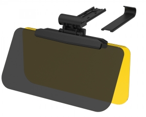 | ● Reduces glare from sunlight during the day and from headlights at night. ● Night screen keeps visibility clear after dark—ideal for city driving. ● Fits OEM sun visors with 185–290 mm depth and up to 21 mm thickness 7.28–11.42 in; 0.83 in. ● Screen size: 350 × 180 mm 13.78 × 7.09 in. ● Easy attachment to the factory sun visor. ● Provides 129 mm fore–aft and 90 mm left–right slide adjustment 5.08 in; 3.54 in. ● Clamp‑arm mount helps prevent marks on the visor. ● UV‑cut material helps protect eyes from harmful ultraviolet rays. ● OEM visor mirror remains usable with this product installed. ● Torque‑hinge screen holds at the desired angle. |