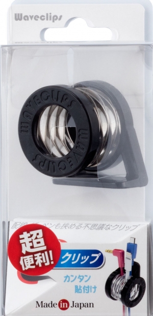 | This multipurpose clip uses a unique wave spring design. It can be used to secure charging cables, cards, pens, and other objects of similar thickness. Can be positioned sideways or vertically. (Includes two pieces of two-sided adhesive tape.) |