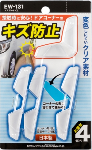 | These transparent edge guards protect your vehicle’s doors from chips and scratches. Their flexible design accommodates angles easily, enabling them to be attached to corners, etc. The guards feature a simple clip-on design using two-sided adhesive tape applied to the inner edge of your door. (Includes 4 edge guards per set.) |