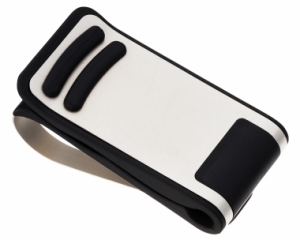 | This sunglass holder is designed for easy one-handed attachment and removal. It features an impressive, high-quality metallic construction that is both durable and weather-resistant. The interior of the clip is lined with soft rubber to prevent damage to sunglasses. |