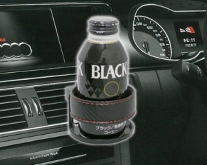 | This cup holder features a sporty design with carbon-fiber-patterned leatherette and red stitching. Includes a tilt adjuster to support mounting to angled air vents. Includes three types of plastic clips for wide compatibility. |
