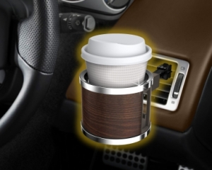 | This cup holder conveniently mounts to your vehicle’s A/C vents and is designed to hold disposable coffee cups, canned beverages, and 500ml (16.91 fl oz) bottled drinks. The cup holder incorporates a four-point silicone rubber support system to heighten stability and reduce vibration. The unit’s adjustable base mount enables it to be used with both flat and angled air vents. |