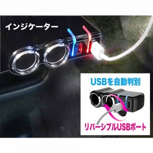 | This vehicle charging adapter includes an indicator light to show each USB device’s charging state. Attaches directly to an existing 12V power socket. * While a device is charging, its indicator light glows red. When charging is complete, the light changes color to blue. Equipped with auto-detecting functionality, enabling the adapter to determine the types of connected USB devices and automatically adjust current for optimal charging. Device detection is performed independently for each USB port; even when different types of devices are attached simultaneously, the adapter provides optimal charging conditions for each individual device. Includes two 12V power sockets and two 5V / 2.4A USB ports (for a maximum cumulative output of 4.8A over USB). Uses reversible USB ports, allowing cables to be inserted without the hassle of checking the plug’s orientation. The adapter itself can be rotated up to 90 degrees to a desired orientation. Compatible with vehicles equipped with a 12V power socket of an internal diameter from 0.83 in to 0.89 in. |