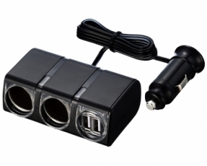 | This vehicle charging adapter provides two 12V power sockets and two USB ports. (The USB ports provide a maximum cumulative output of 5V / 2.4A.) The USB ports automatically detect connected devices and automatically adjust the current for optimal charging. Conveniently mounts to a preferred location via two-sided adhesive tape. |