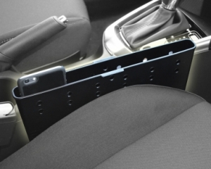 | This storage pocket fits in the gap between the front seats and center console to conveniently hold items and to prevent objects from falling into hard to reach places between the seats. The included belt can also be used to hang the storage pocket from a headrest or underneath a seat. Includes a convenient additional pocket for smaller items. |
