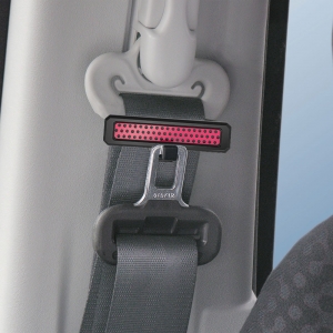 | This seatbelt stopper includes a handy hook to hang your seatbelt buckle. It features a sporty, red perforated-aluminum design. The flashy red color and perforated design provide a perfect accent for your interior. The hook provides the perfect place to hang your seatbelt buckle easily and neatly when not in use. A flip-up unlock mechanism allows the buckle to be easily retrieved when needed. |