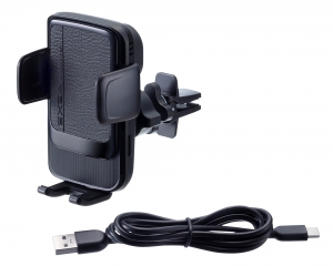 | *A smartphone holder that detects the charging coil position of the smartphone and automatically adjusts to the optimal charging position. *Mounts with a dedicated clip that can be sandwiched between air conditioner louvers in place by tightening the screws. *Simply place your smartphone that supports wireless charging in the holder to enjoy high-speed charging with a maximum output of 15 W. *This product is Qi-certified; the industry standard for reliable charging. *High-quality synthetic leather is used for the front panel. *A quiet design free of electronic sounds when adjusting the position makes it great for day-to-day use. *This smartphone holder is equipped with a push button |
