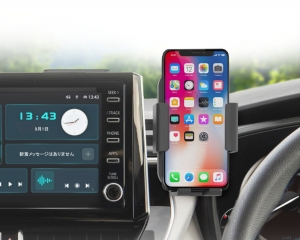 | *A smartphone holder that can be attached to the back of the stand-alone center console display. *The holder can be rotated and slid even after installation, making it easy to make minor positioning adjustments. *Its user-friendly design means it can also be attached to the back of a computer monitor for use in the office or at home. |