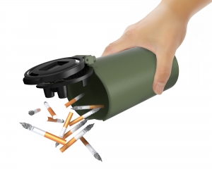 | Stylish Two-Tone Solar Ashtray with Full Disposal Function for Convenient Ash Removal Allows for Complete Disposal of Accumulated Cigarette Butts with Full-Open Ash Dumping Feature Two-Tone Design with Black Lid and Olive Green Body |