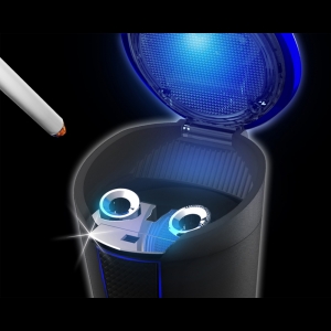 | This ashtray features a simple, one-touch opening lid. It uses a wide, angled mouth to improve visibility while driving and help keep ash where it belongs. Includes a simple, one-touch cleaning function to remove buildup in the extinguisher slots, and the ashtray’s lid can be fully detached for convenient and thorough ash disposal. Includes the built-in extinguisher slots which accommodate super-slim through regular diameters and also includes stands for lit cigarettes. Includes two slots for simply and safely putting out cigarettes while driving. A solar panel located on the top of the unit provides power for an internal blue LED and detects ambient lighting conditions. When the vehicle interior is dark, the LED automatically turns on while the lid is open. |
