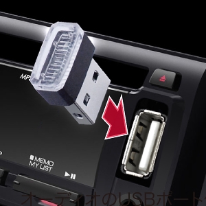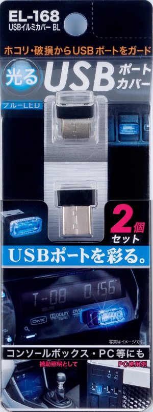 | This accessory was awarded 2nd place in the illumination division of Minkara’s 2016 Parts of the Year Competition. (Minkara is one of Japan’s major car and car accessory review sites.) This illuminating USB port cover protects ports from dust and other foreign objects. Its blue light is perfect for adding a stylish highlight to your surroundings. (Includes 2 per set.) Can be installed as an auxiliary light on your vehicle’s console or on a PC, etc. |