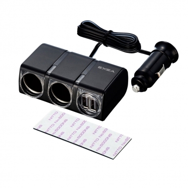 | * Socket extension unit with cord (1 m / 3.3 ft. length) that can be installed in any location you prefer using double-sided tape. * Automatic self-discriminating enables this product to detect the connected device type and charge using a suitable charging current. Independent control for each port enables simultaneous charging of different device types with optimal charging conditions for each *The power monitor uses two blue LED lights, giving your car interior a more elegant feel at night. * This device powers two 12 V sockets and USB 2.0 ports (combined total of 5 V / 2.4 A). * Uses reversible USB ports so cables can be inserted without the hassle of checking the plug’s orientation. * Compatible with vehicles equipped with a power socket of an internal diameter from 21.0 mm to 22.5 mm (0.83 in. to 0.89 in.). |