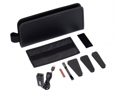 | *A convenient pocket that can be installed in the gap between the seat and the center console. *Two easily accessible USB-A ports can be added inside the car, which is handy for charging smartphones and other such devices. *A luxurious leatherlike material is used for the surface of the pocket. *The USB ports are equipped with a white LED light that illuminates the inside of the pocket, making them easy to use even when it is dark inside the car. *Adopts a reversible USB port interface that means USB cables can be inserted the right way every time. *The fall prevention board can be installed in a position of your choice to prevent the pocket from falling between the gap. *You can arrange the layout of the inside of the pocket with three types of space dividers of different sizes. *You can prevent from slipping out of position by hooking the elasticated bands on the seat belt buckle. |