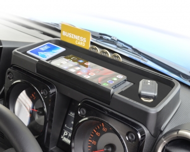 | A storage tray that can be installed on the dashboard (above the vehicle console) with double-sided tape. The charging tray can be freely adjusted, with no set levels, to an angle that makes it easy to see your smartphone (up to 85° horizontally*) (*Cannot be fixed in place from about 0 to 15°). You can place keys and small items around it, and it also has a convenient coin and ticket holder. It supports wireless charging with a maximum output of 15W. It is equipped with a USB-A port on the tray so you can charge your smartphone even with a wired connection* (*Cable not included). It comes with a fall-prevention stay that prevents the smartphone from falling out of the tray (the fall-prevention stay can be stored away). |