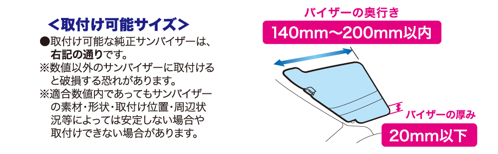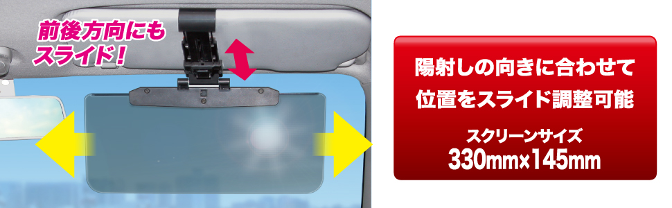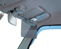 | This polarized anti-glare sun visor cuts down on bright lights and UV rays. Attaches to standard sun visors measuring between 140 and 200mm (5.51 and 7.87 in) from front to back. (Allows continued access to the visor mirror on standard mirror-equipped sun visors.) The polarized visor slides up to 2.36 in forward and back and up to 3.54 in left and right for ideal positioning. (Includes a clip to store parking stubs, etc.) |