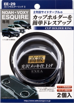 | These rings add flair to your side table cup holders. They are designed specifically for use in Toyota Noah, Voxy, and Esquire 7-passenger vehicles. The rings attach simply with the use of two-sided adhesive tape. (Includes two rings per set.) |