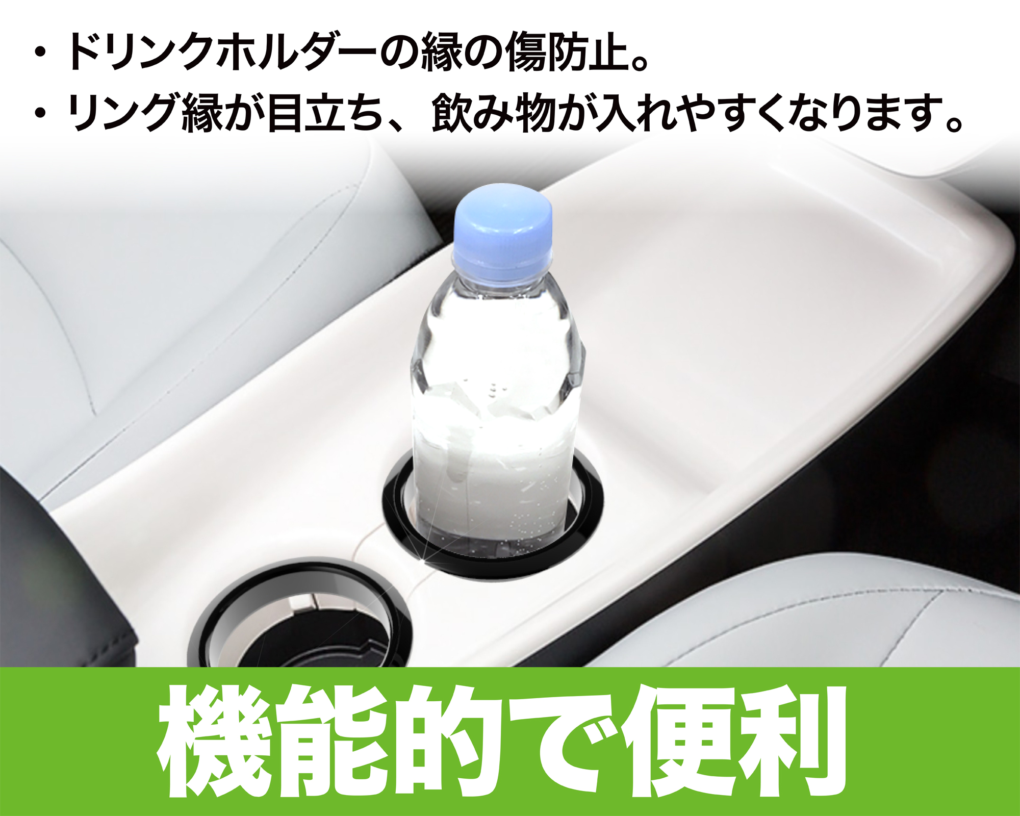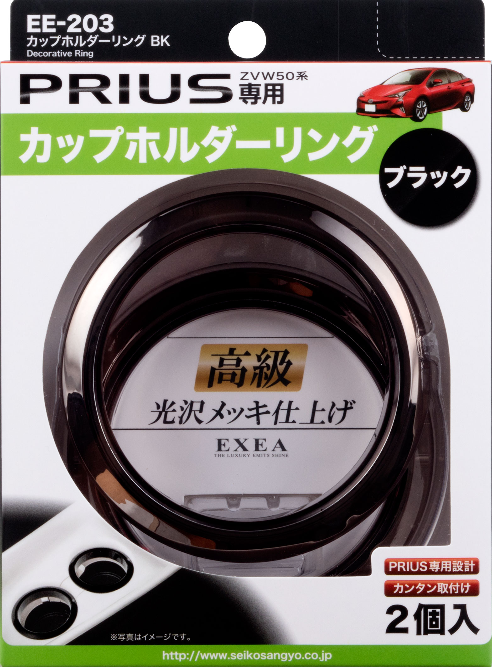 | These rings add flair to your cup holders with their black, metallic-plated design. They are designed specifically for use in the ZVW50-series Toyota Prius. The rings attach simply with the use of two-sided adhesive tape. (Includes two rings per set.) |