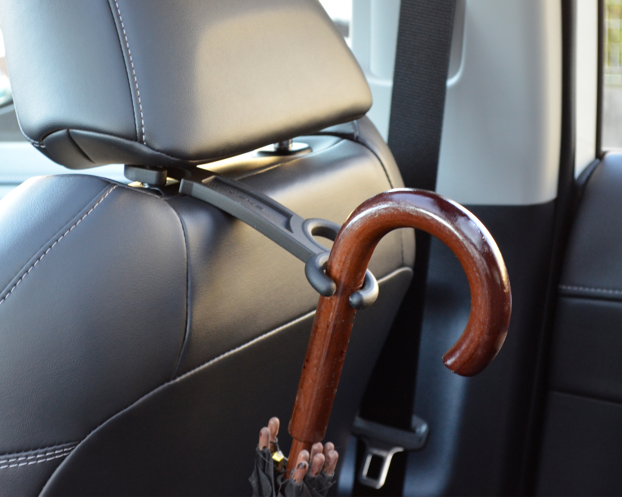| *A holder attached to the head rest of the seat in front that holds up to two items, including umbrellas, walking sticks and snow brushes, etc *Uses convenient C-shaped ring holders to easily push in and pull out umbrellas and other handle objects to hold them in place *Simple hang from a head rest shaft for easy installation *Rotate around when not in use to cleanly store between the head rest shafts |