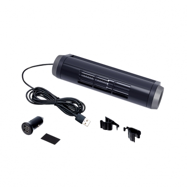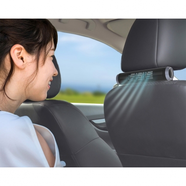 | *A stick fan that can be easily mounted on a headrest for use by front seat or rear seat passengers *The direction of air flow can be adjusted after mounting Employs a stylish design that does not spoil the atmosphere of the car interior *The air volume can be adjusted in four steps to the user’s liking using a control switch *Can be used as a circulator in all seasons *The air blowing port features a perforated design to prevent hair strands getting tangled up *The USB plug(Type-A) power cord is a long cord measuring around 98.4 incheses(2.0 m) to provide plenty of room *Includes a two-port USB charging cable for total output of 2.1A(for 12V vehicles) *Compatible with car models with an internal socket diameter of between 0.82–0.88 incheses(21 mm–22.5 mm) |