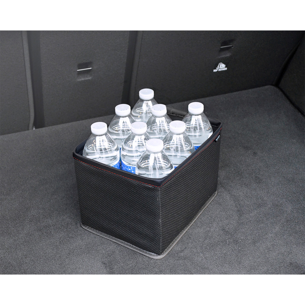 | *A trash box that uses luxurious leather-like materials. *A large square-type box with plenty of storage space *Easy to install with a hook and loop fastener *Can hold up to eight 500 ml plastic bottles ★The number of bottles that can be stored may vary depending on the shape of the bottle *Use the hook and loop fastener on the bottom of this product to attach it to the floor directly for use ★The hook and loop fastener may not attach to the floor properly depending on the type of mat in use |