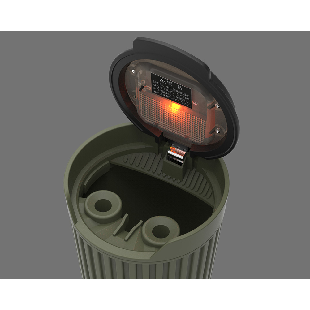| *Features a unique “military-style” coloring and stenciled lettering to give your vehicle’s interior an original feel. *The thick lid and raised lip helps prevent ash from blowing back up into the vehicle’s interior. *Amber LED auto light turning automatically and not too shiny. |