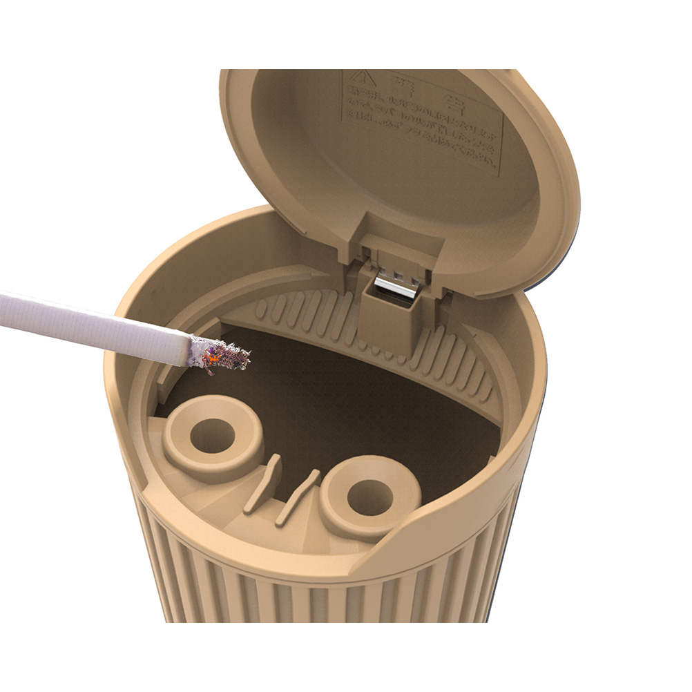 | *Features a unique “military-style” coloring and stenciled lettering to give your vehicle’s interior an original feel. *The thick lid and 0.63 in raised lip helps prevent ash from blowing back up into the vehicle’s interior. *Includes two extinguisher slots and stands for lit cigarettes, able to accommodate diameters all the way down to super slim (5–8 mm, 0.2–0.3 in). |