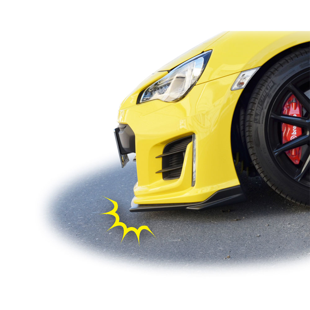 | ●This front spoiler guard is made of soft material and attaches to front spoilers or other body kit components to protect them from scrapes during normal driving. ●Prevents damage along the underside of the vehicle due to contact with the ground when maneuvering around curbs, slopes, or steep inclines found in parking structures, etc. ●Uses a unique design with an aerodynamic styling. ●Installs easily via two-sided adhesive tape. Includes strong, high-quality 3M brand tape. ●May also be attached with screws for even greater support. * Screws not included. ●Made of highly abrasion-resistant TPU material. |