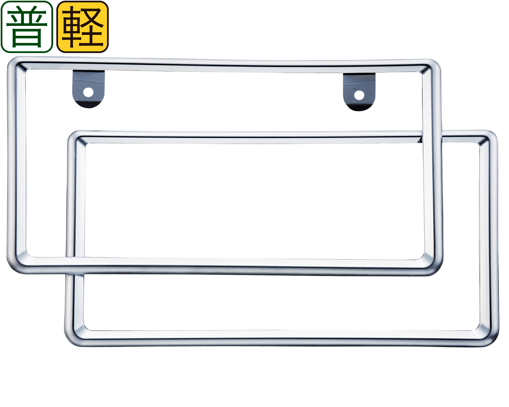 | Their design incorporates both matte and lustrous metal plated elements for a stylish appearance. Composed of molded resin with an attractive chrome-plated finish. The set fits Japan’s standard and kei-size license plates. (Includes 2 frames per set, 1 each for a front and rear plate.) |