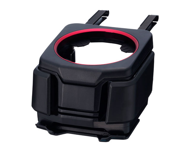 | This cup holder includes a smartphone mount designed to hold phones in cases of all sizes, including large wallet cases. (The mount’s grips extend out from the body of the holder and swing open to provide inclusive support for devices ranging in width from 2.56 to 4.72 in. An extendable foot tray supports the base of the device.) The cup holder is designed to accommodate beverages on the go, including disposable coffee cups, canned drinks, and 500ml (16.91 fl oz) bottled drinks. Features a matte-black body. The mouth of the cup holder is lined with stylish metallic plating (color: mica red). The cup holder incorporates a four-point silicone rubber support system to heighten stability and reduce vibration. The unit’s adjustable base mount enables it to be used with both flat and angled air vents. |