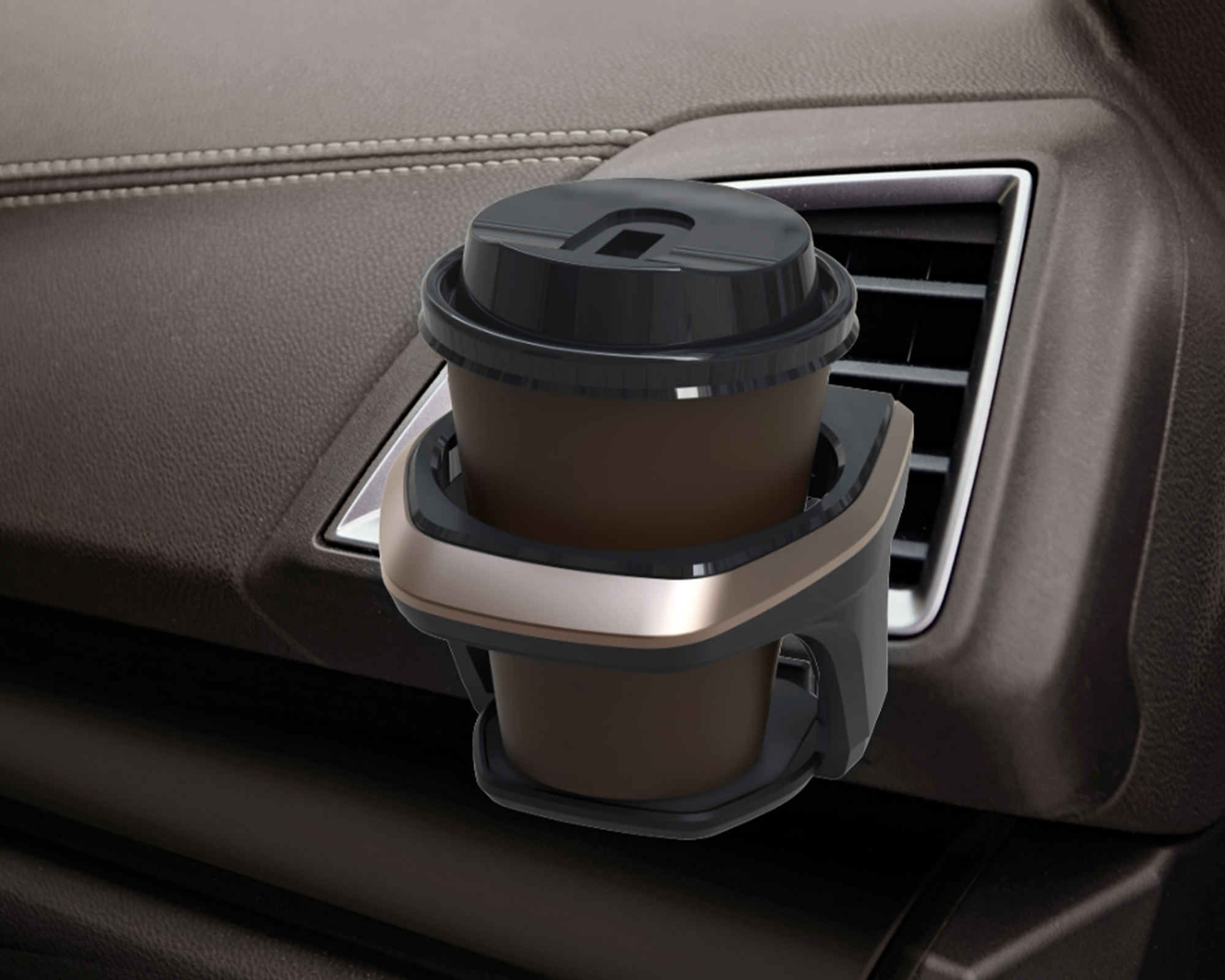 | *A simple, square-shaped drink holder that attaches to a louver of an air conditioner vent. *The open design ensures optimal airflow from the A/C unit. *Adopting a newly designed flap, convenience store coffee cups and hourglass-shaped PET bottles can be put in and taken out of the holder with ease. *The coaster, made of EVA materials, creates less unpleasant rattling noises while driving. *Enjoy easy installation just by inserting the dedicated clip. *The cup holder is designed to accommodate beverages on the go, including disposable coffee cups, canned drinks, and 600ml (20 fl oz) bottled drinks. |