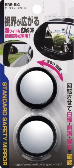 | This auxiliary safety mirror adds a 1.46 in wide-angle, 90-degree viewing radius insert to a vehicle’s existing side mirror. Convenient for checking parking lines and parking blocks while in the car. Attaches with two-sided adhesive tape. (Includes two mirrors per set.) |