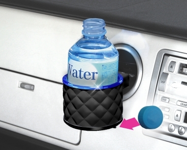 | This cup holder conveniently mounts to your vehicle’s A/C vents and features an elegant diamond-quilting style pattern. Includes a convenient cap holder to keep screw-off caps for drinks in plastic bottles. Includes three types of plastic clips for wide compatibility. |