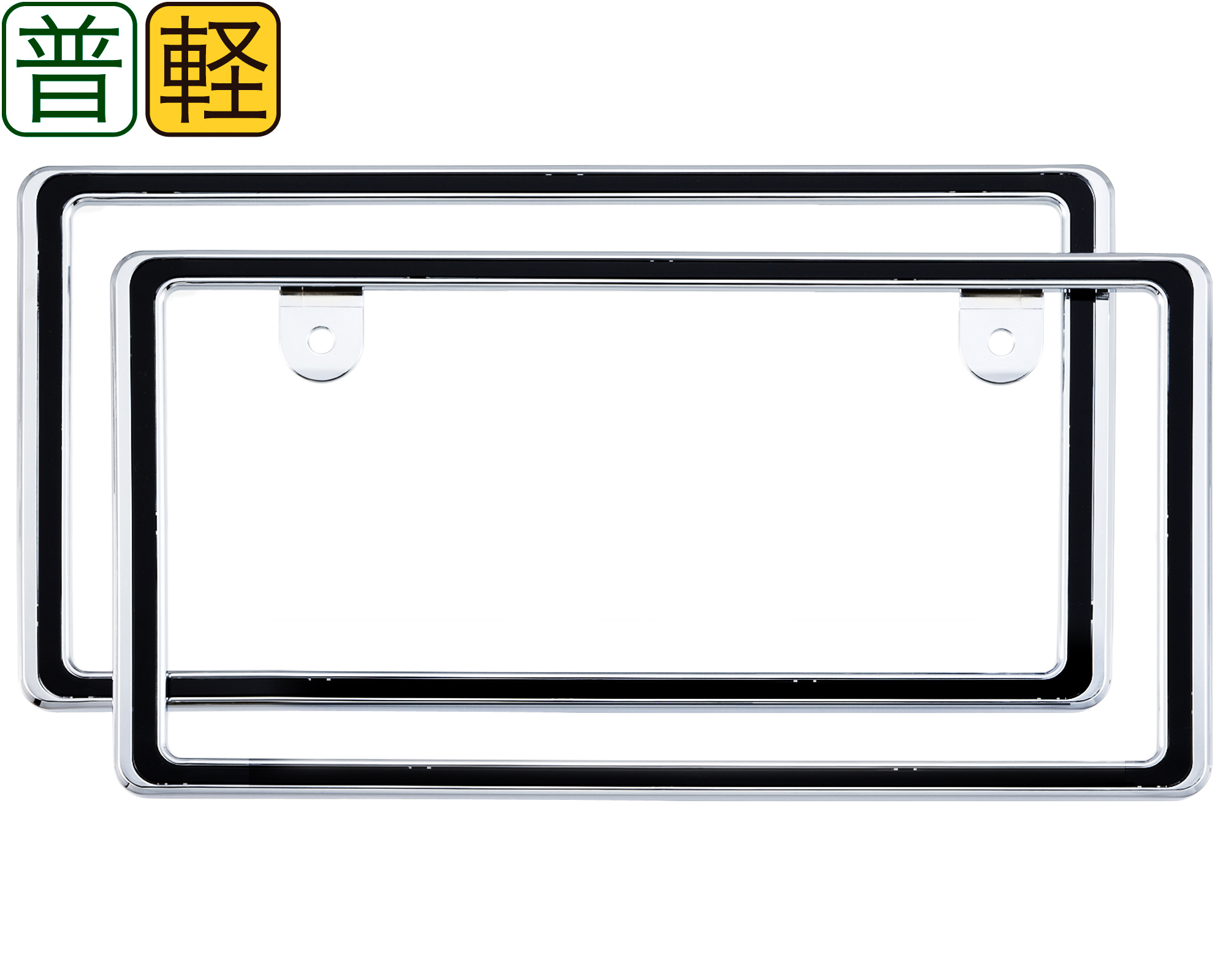 | These license plate frames feature a luxurious chrome-edged black panel design. The set fits Japan’s standard and kei-size license plates. (Includes 2 frames per set, 1 each for a front and rear plate.) |