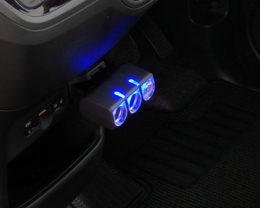 | This vehicle charging adapter provides two 12V power sockets and two USB ports. (The USB ports provide a maximum cumulative output of 5V / 2.4A.) The USB ports automatically detect connected devices and automatically adjust the current for optimal charging. Attaches simply and directly to one of the vehicle’s existing 12V power sockets. Can be freely rotated to a desired orientation. |