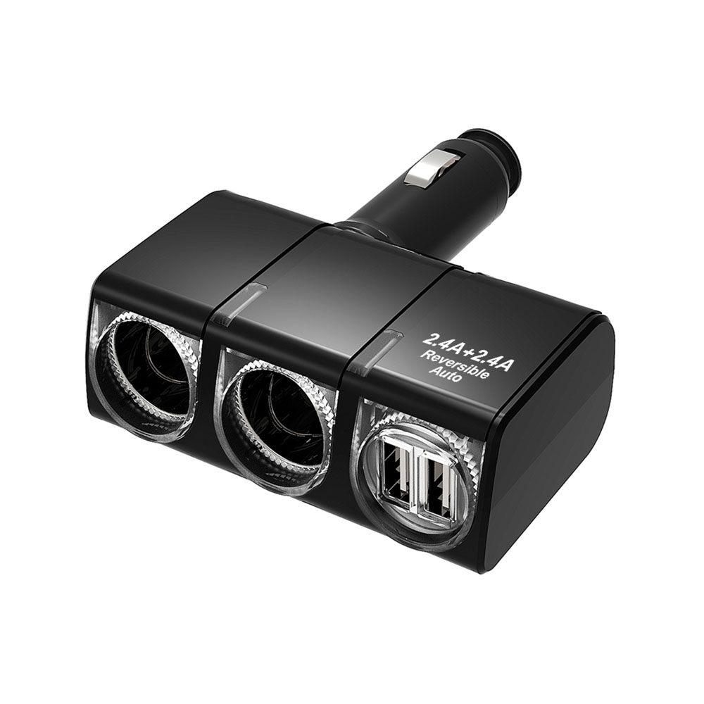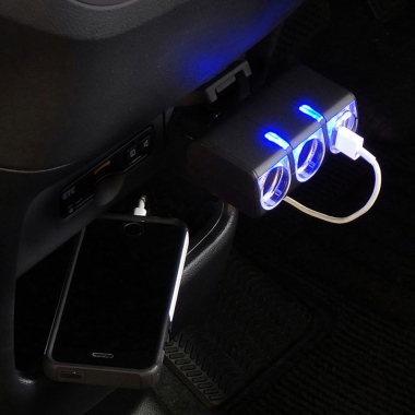 | This vehicle charging adapter attaches directly to an existing 12V power socket and provides two 12V power sockets and two 5V / 2.4A USB ports (for a maximum of 4.8A over USB). Uses reversible USB ports, allowing cables to be inserted without the hassle of checking the plug’s orientation. Each USB port is also able to automatically detect the type of connected device and adjust current to provide optimal charging conditions for the detected device. Can be freely rotated to a desired orientation. |