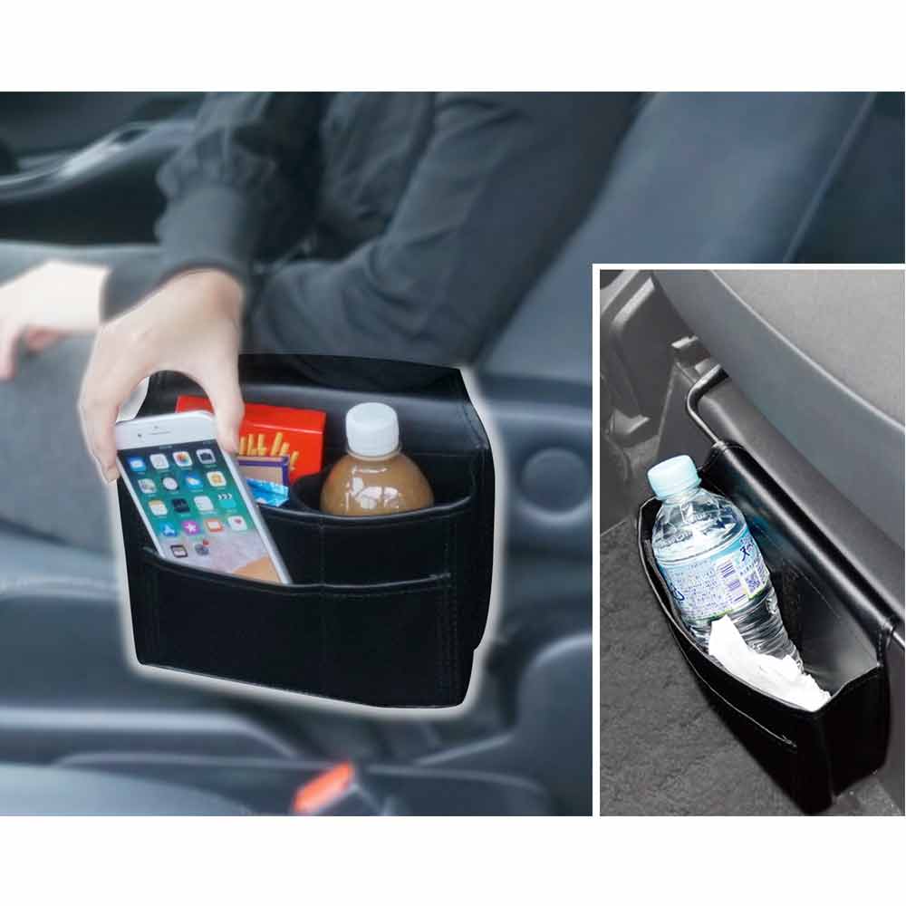 | *This convenient, easy-to-use storage pocket easily attaches to seat armrests in minivans and other vehicle types. *Easily accommodates larger smartphones as well as oversized individual plastic drink bottles. *Features internal dividers for easy organization. The dividers can be quickly folded away when unneeded. *Can also be attached to seat bottoms as a handy, out-of-the-way storage solution. |