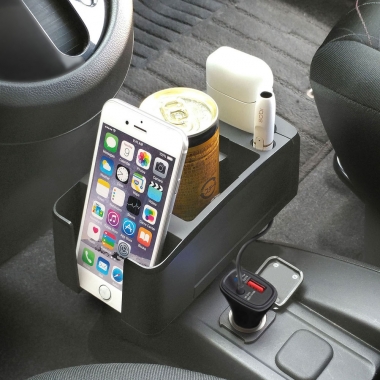 | ●This twin cup holder attaches to one of your vehicle’s ordinary cup holders and slides out to provide space for two drinks. ●Can also be used to hold an IQOS charging unit, up to 2 IQOS heating pens, or even a smartphone inside a wallet case. ●Each cup holder incorporates a four-point silicone rubber support system to heighten stability and reduce vibration. ●The attached rail can be positioned forward or backward, providing a customized layout ideal for your needs. ●The cup holders fit canned drinks in both slim and wide cans, disposable coffee cups, 500 ml : 16.91 fl oz bottled drinks, and 500 ml :16.91 fl oz paper cartons. ●Includes an optional foam spacer for extra stability. |