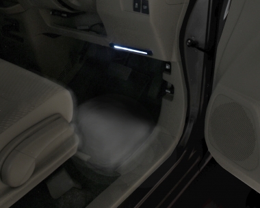 | This vehicle foot lamp is easy to install and provides gentle illumination when the vehicle’s door is open. Uses a solar-powered battery and a magnetic switch to detect when the door is open or closed. Automatically detects low-light conditions and allows the white LED to be activated accordingly. |