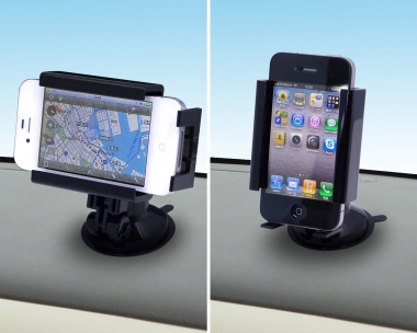 | This vehicle smartphone mount provides a simple location to easily slide your device in or out of. Freely attaches to a desired location on the dash via suction cup. (Includes gel and sticker disc for use on uneven surfaces.) The adjustable arm provides unrestricted 3-dimensional movement, and the face of the mount can be rotated 360 degrees left or right and tilted 180 degrees back or forth. This vehicle mobile device mount provides unrestricted 3-dimensional movement and is ideal for holding iPhones and other smartphones. |