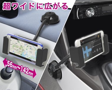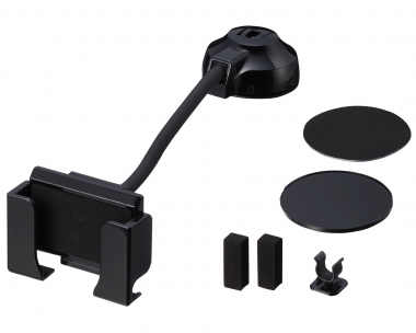 | This vehicle smartphone mount uses a flexible gooseneck arm to provide a wide range of motion. The mount’s grips can be extended to accommodate phones in both portrait and landscape mode. Freely attaches to a desired location on the dash via suction cup. (Includes gel and sticker disc for use on uneven surfaces.) |