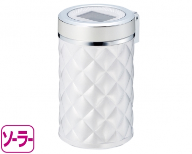 | This ashtray features an elegant diamond-quilting style pattern and a solar-powered LED for nighttime use. The body comes in a beautiful pearl-white color. The LED in this version is blue. |