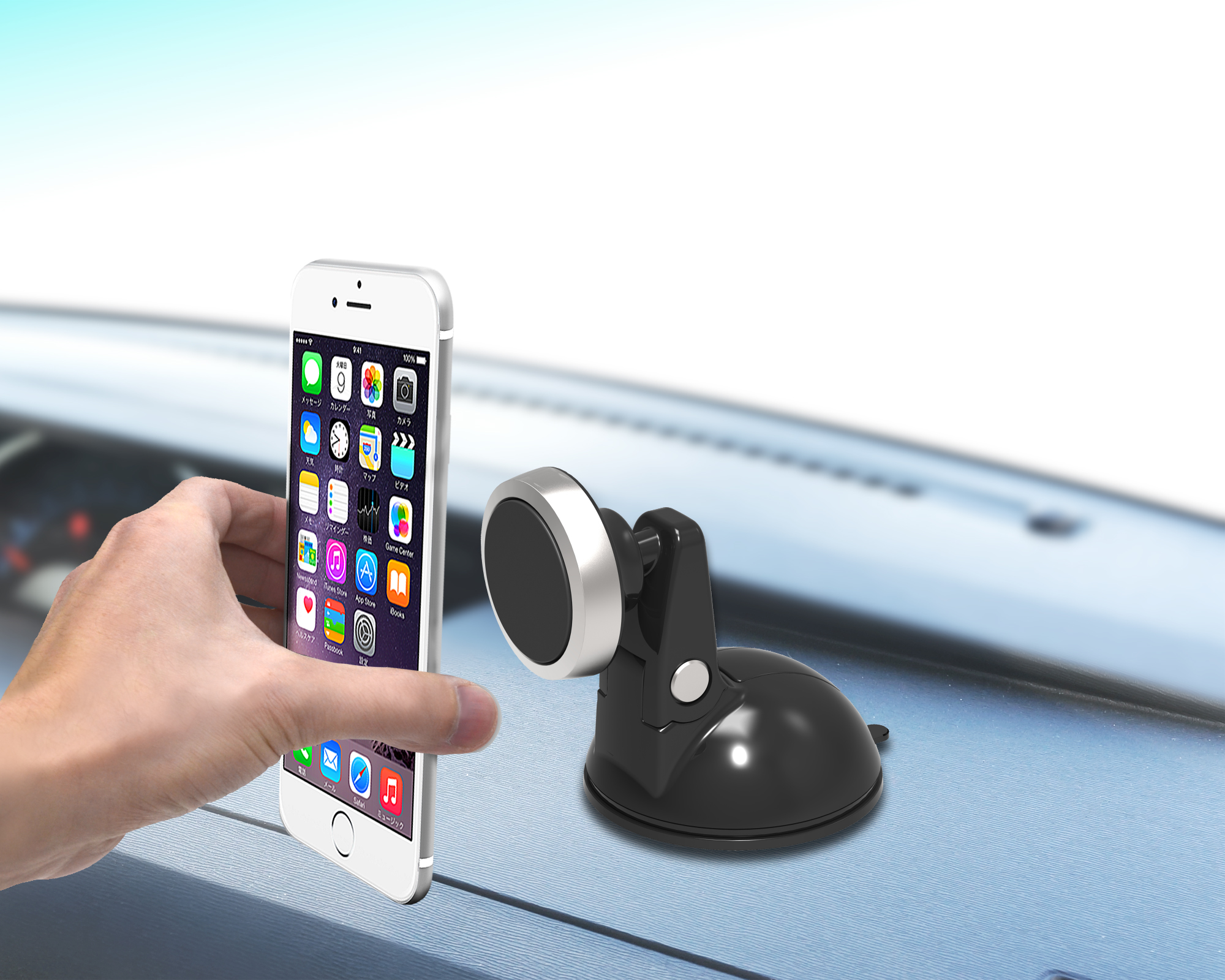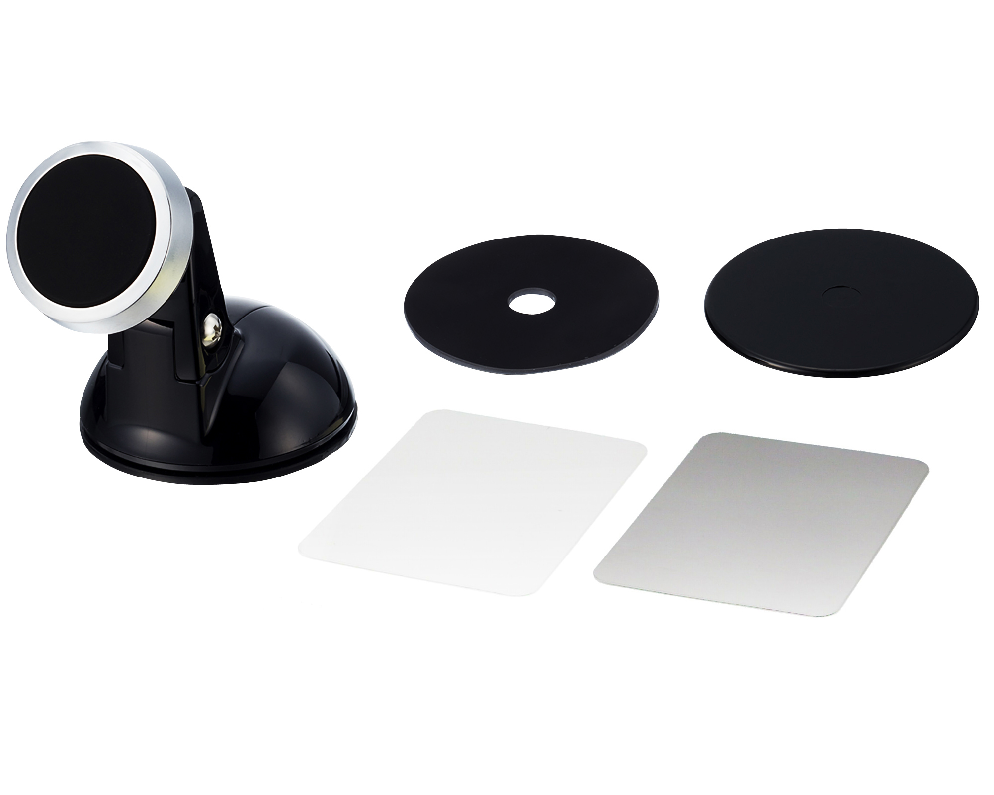 | This magnetized mount provides an easy location to place a smartphone in your vehicle. Uses a ball joint which can be easily tilted and rotated without any need for retightening of the joint after each position change. Freely attaches to a desired location on the dash via suction cup. (Includes gel and sticker disc for use on uneven surfaces.) |