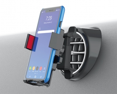 | *A prop up-type smartphone holder ideal for rounded air conditioning fan outlets *Easy to attach and remove from fan outlets simply by retracting and stretching the extendable upper and lower clips *Equipped with an auto-catch feature to attach and remove the smartphone with a single touch *Capable of holding both small-size smartphones and smartphones in a hard case *Freely adjustable angle using the rear ball joint |