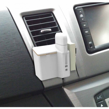 | This A/C-vent-mounted holder is designed for convenient use with the IQOS smokeless cigarette system. A rubber-lined mount for the IQOS charging unit minimizes vibration noise while the vehicle is in motion. Features a cleaning device to keep the IQOS heating pen clean during use. Includes a clip for a box of IQOS HeatSticks. |