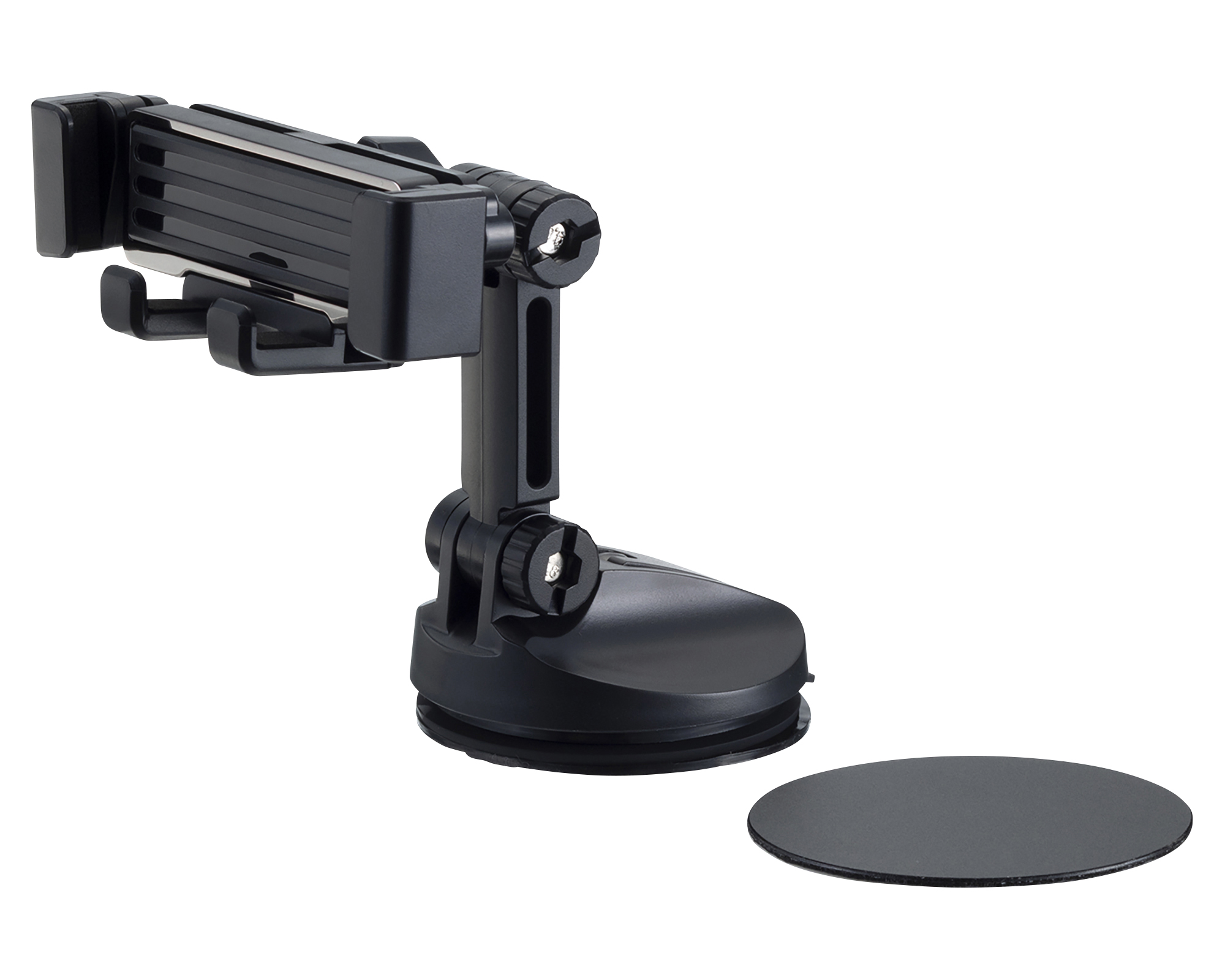 | Insert your smartphone, and the arms will close automatically to keep it secure under their own weight The arms move back and forth to accommodate a variety of smartphone thicknesses Featuring an adaptable suction cup with gel and an auxiliary plate |