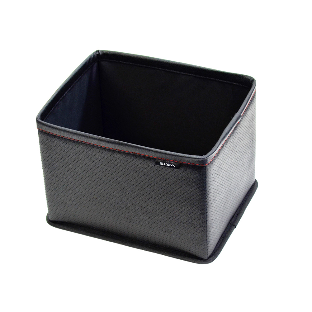 | *A trash box that uses luxurious leather-like materials. *A large square-type box with plenty of storage space *Easy to install with a hook and loop fastener *Can hold up to eight 500 ml plastic bottles ★The number of bottles that can be stored may vary depending on the shape of the bottle *Use the hook and loop fastener on the bottom of this product to attach it to the floor directly for use ★The hook and loop fastener may not attach to the floor properly depending on the type of mat in use |