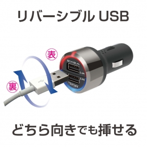 | ●12V/24V車対応のUSB充電プラグです。 ●USB機器の充電状態の目安を示す、インジケーターを採用しています。 ※充電中は「赤色」、充電完了時は「青色」にインジケーターが変化します。 ●USBポートは接続した機種を自動で判別し、機種に合った電流で最適充電を行う自動判別機能を採用しています。 ※各ポート毎に独立制御しますので、異なる機種を同時に接続してもそれぞれに最適な充電ができます。 ●USBの表裏を気にせず挿せるリバーシブルUSBポートを採用しています。 ●USB出力は5V/2.4A×2ポートで合計4.8Aです。 ●高級感のあるBLACKメッキを採用しています。 リバーシブルタイプのUSB ポートの注意点はコチラ |