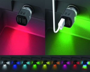 | ●8色の単色固定点灯やグラデーション点灯を選べるライト機能付きのUSBポートです。 ●3つのLEDにより、お車のソケット周辺への照射方向を選択できます。 ●明るさの調整やホタルモード*(蛍のような光り方)への切替ができます。*下記参照 ●エンジンを切って再始動しても前回の設定のまま点灯するメモリー機能を搭載してます。 ●USBポートは接続した機種を自動で判別し、機種に合った電流で最適充電を行います。 ●リバーシブルUSBポート採用で、接続するUSBの表裏を気にせずに挿せます。 ●USB出力は各ポート5V/2.4Aで、2ポート合計4.8Aです。 ●12V/24V対応です。 |