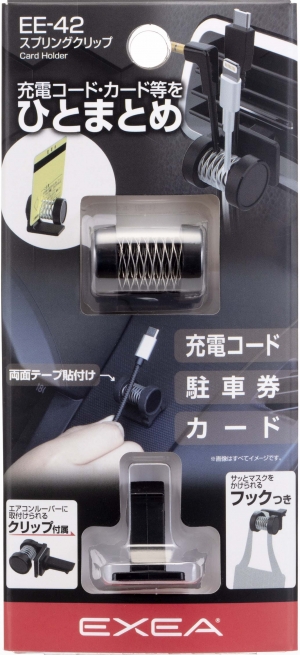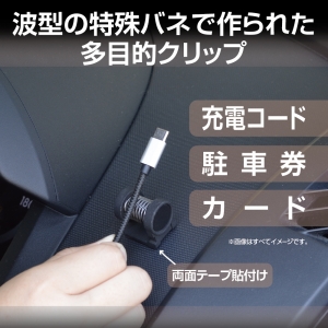 | ●波型の特殊バネで作られた多目的クリップです。 ●充電コードやカード、更にはペンなどの厚みのある物も挟めます。 ●360度全ての方向から差し込むことができます。 ●付属の両面テープで本体を縦向き、横向きにして貼付けることができます。 ●付属のクリップと両面テープでエアコンルーバーに取付けることができます。 ●本体にはマスクをかけられるフック機能がついています。 |